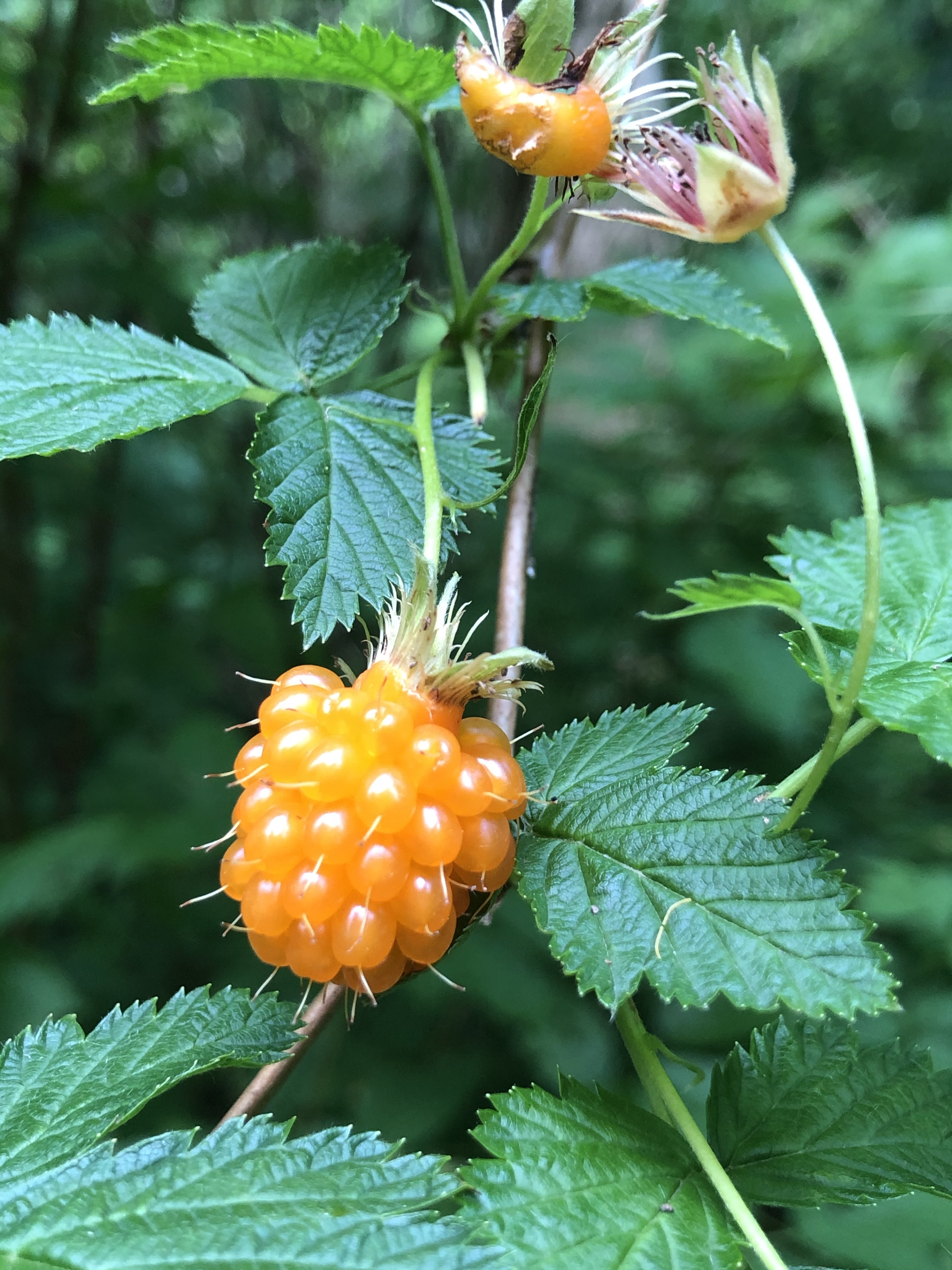 Auch die Wildpflanzen geben Rätsel auf. Gelbe Himbeeren im Wald? Gezüchtet kann ich mir alle Farben vorstellen, aber als Wildpflanze? Sie schmecken ähnlich, nicht ganz so süß.
