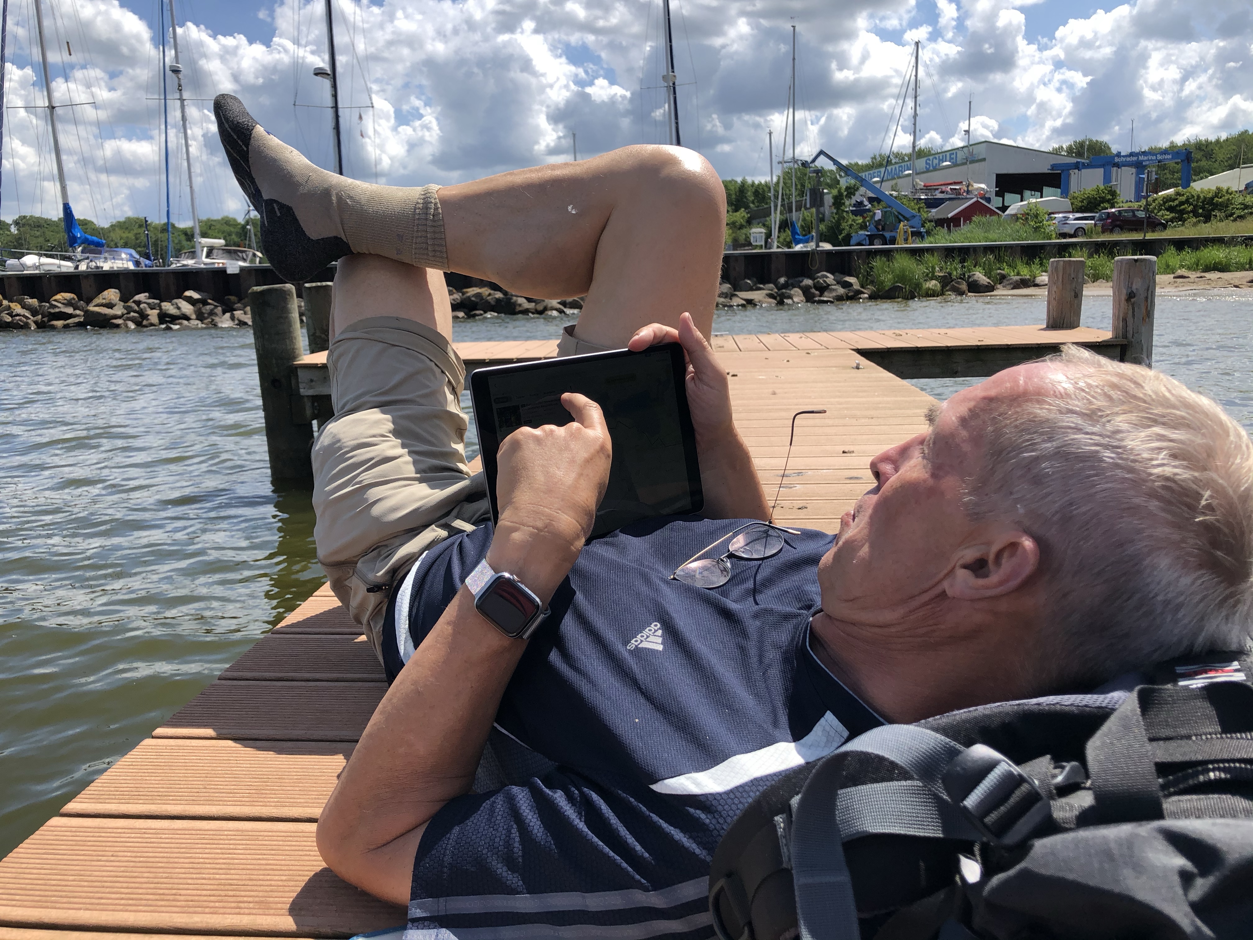 Weiter ging es dann ums Noor und wieder an die Schlei. Wir konnten herrlich Mittag auf einem Steg an der Schlei genießen. Das Aufstehen viel uns nachher schwer.