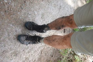Von der Burg muss ich wieder ins Tal, um auf der anderen Seite wieder aufsteigen zu können. Die Burg Falkenstein l,iegt leider auf der falschen Seite des Tals. Nun darf ich es wieder einmal erleben, dass eingezeichnete Wege nicht unbedingt begehbar sein müssen. Diesmal war es kein Naturschutzgebiet (siehe Etappe 31), sondern ein Bachlauf welcher den Weg kreuzt. Ich weiß zwar nicht, wenn es hier das letzte Mal geregnet hat, aber lange kann es nicht her sein. Die schwarze Pampe sieht zwar begehbar aus, aber nur bis zum ersten Schritt. Bis zu den Knien stecke ich im Schmodder. Schnell wieder heraus und den Berg hinunter. Ich muss ja nochmals die Selke überqueren. Am Bach mach ich halt und führe eine Fusswaschung durch. Mit frischen Socken, fast trockenen Schuhen und einem gerade verzehrten Teil meines Harzer Frühstückes (Brot mit Harzer Käse, Leberwurst und Blutwurst) gehe ich das „Lange Tal“ hoch. Es stehen dort viele vertrocknete Bäume, ein Hinweis auf das Waldsterben. Daneben besteht jedoch genauso grüner Wald, wie ich ihn von zu Hause kenne. Mir scheint es, als ob es vor allem die Lärchen betrifft. Mal sehen wie sich dies mit zunehmender Höhe ändert.