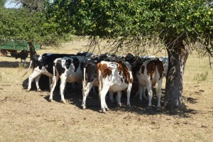 Weiter gehe ich bis zur Mündung der Ahr, bevor ich nach Sinzig abbiege. So klein habe ich mir die Ahr beim besten Willen nicht vorgestellt. Wahrscheinlich habe ich den Fluss mit den mir bekannten hervorragenden Weinen von der Ahr mit erhöht. So gute Weine können doch nicht von so einem mickerigen Fluss kommen. Jetzt ist es schon drückend heiß, so dass ich den Umweg über Sinzig schon fast bereue. Nicht nur mir ist es heiß, sondern auch den Kühen. Der Schattenplatz ist eng belegt und keine Kuh bewegt sich. Es muss lustig aussehen, wenn die Kühe mit dem Stand der Sonne jede viertel Stunde einen Schritt vorgehen. Ich würde ihnen gerne zurufen, dass es hier noch mehr Bäume gibt, aber kühisch kann ich nicht.