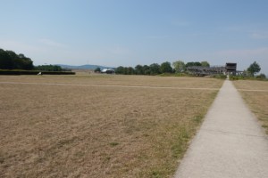 Nach Vallendar geht es wieder runter an den Rhein, ein Stück der Bundesstraße entlang und dann in den Ort. Mir kommen vor allem Herren mit Brötchentüten entgegen. Sonntags um 10.00 Uhr bedeutet dies spätes Frühstück und kein Mittagessen. Durch ein Tal geht es wieder hoch. So wie ich auf eine Sonnenfläche komme, läuft der Schweiß. Ich komme an der Kaserne vorbei zur Freifläche von Ehrenbreitenstein. Diese Fläche war Teil der Bundesgartenschau 2011, ein Projekt bei dem wir auch Teile betreuen durften. Die heutige Aufenthaltsqualität geht gegen Null (siehe Bild). Was angenommen wird sind die Ausstellungen in der Festung, die Aussichtsplattform aus der Bundesgartenschau, sowie die Seilbahn. Die riesige Freifläche ist eine offene Rasenfläche, jetzt braun, ohne Bäume und Aufenthaltsqualität. Das gastronomische Angebot ist ebenfalls sehr überschaubar. Aber die Stadt ist glücklich über den Zuspruch.