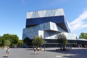 In Heilbronn laufen wir über das ehemalige Landesgartenschaugelände. Schön sind die Stege und die Verbindung mit dem Wasser. Die vorhandene Bebauung gibt einen Eindruck, was eine verdichtete städtische Bebauung bedeutet. Die Besonderheit ist eher die energetische Betrachtung der Häuser, von der Form und Anordnung erkenne ich nichts modellhaftes. Es geht an der experimenta vorbei in die Innenstadt. Die experimenta ist Deutschlands größtes Science Center. Die Kollegen könnten noch viel mehr darüber erzählen.